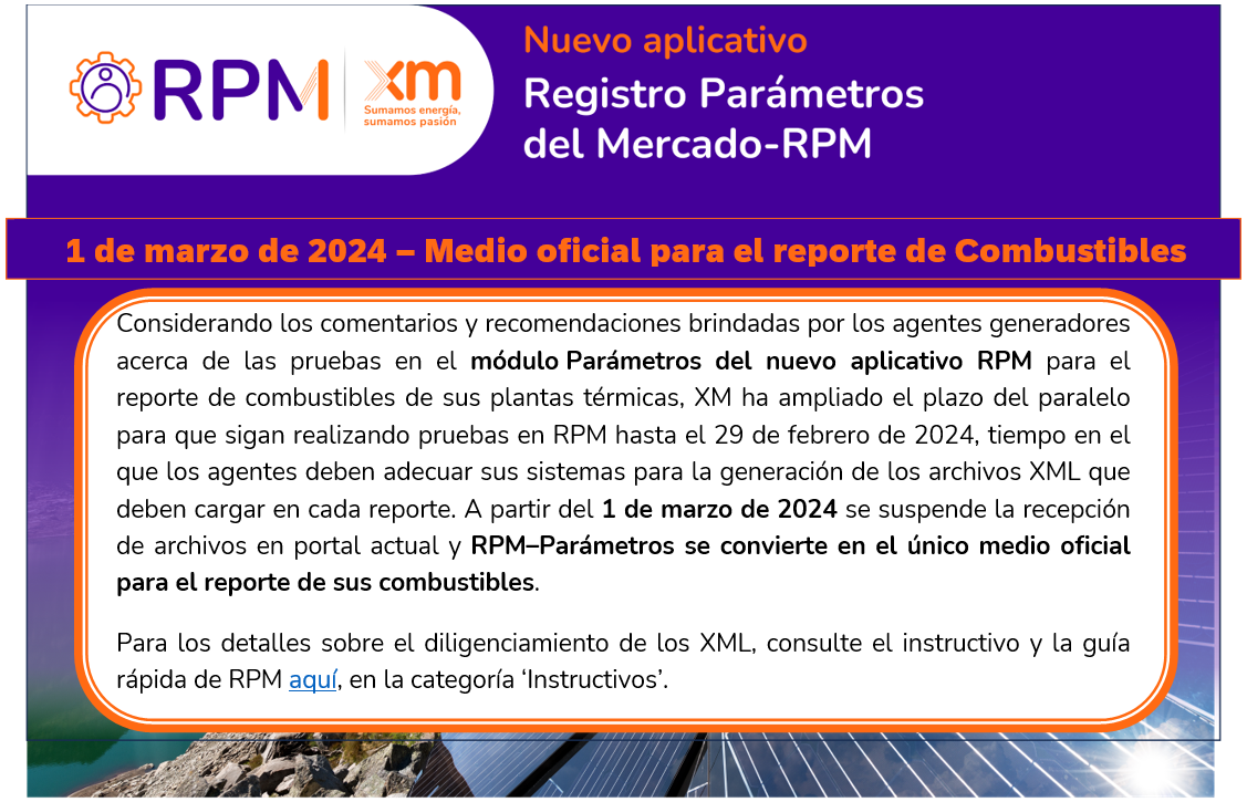 Nuevo aplicativo RPM - Ampliación del plazo para pruebas del reporte de combustibles
