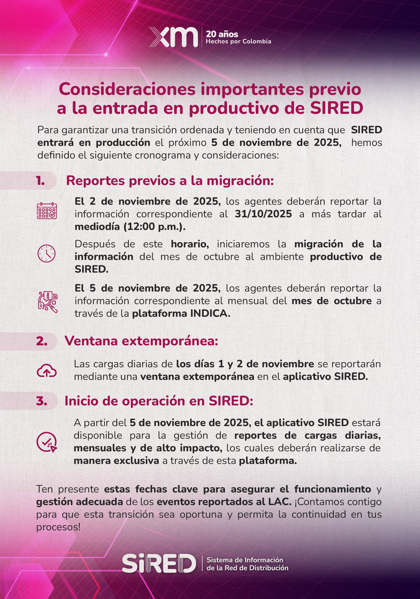 Consideraciones importantes previo a la entrada en productivo de SIRED