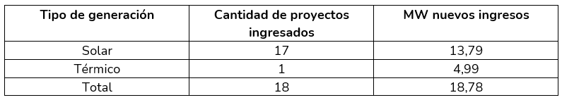 En el tercer trimestre del 2025 ingresaron 18 proyectos de generación con un total de 18,78 MW. En la siguiente imagen se muestra su ubicación.