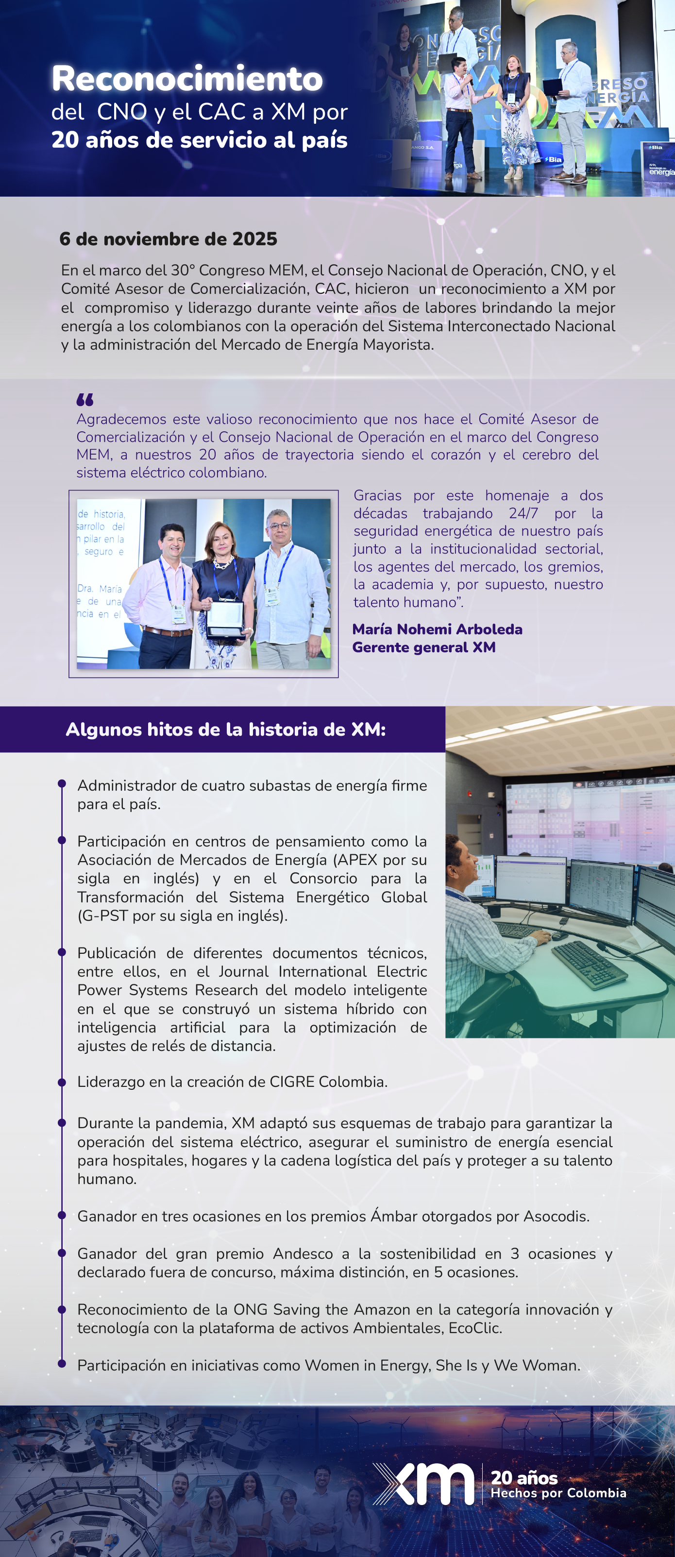 Reconocimiento del CNO y el CAC a XM por 20 años de servicio al país