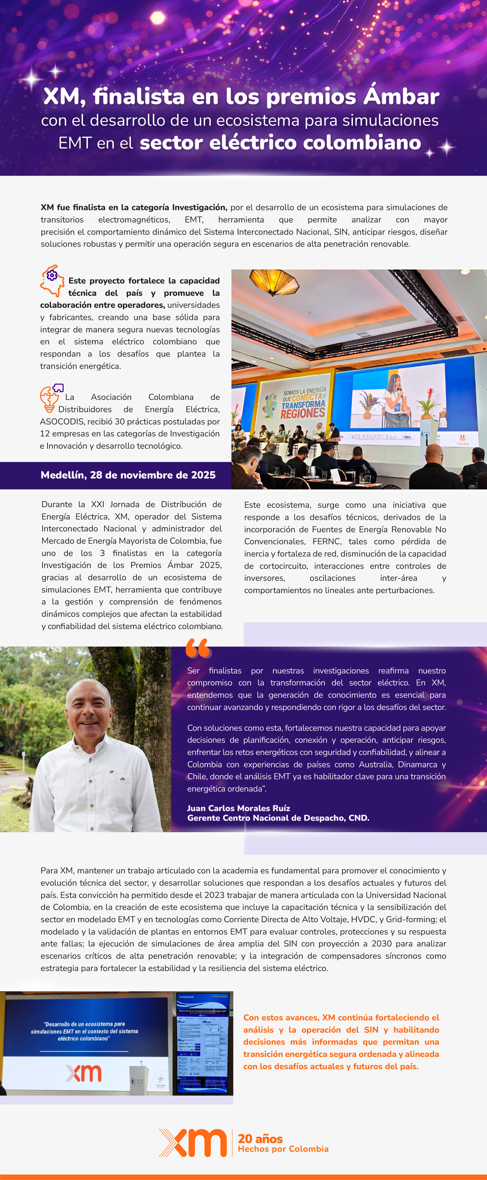 XM, finalista en los premios Ámbar con el desarrollo de un ecosistema para simulaciones EMT en el sector eléctrico colombiano