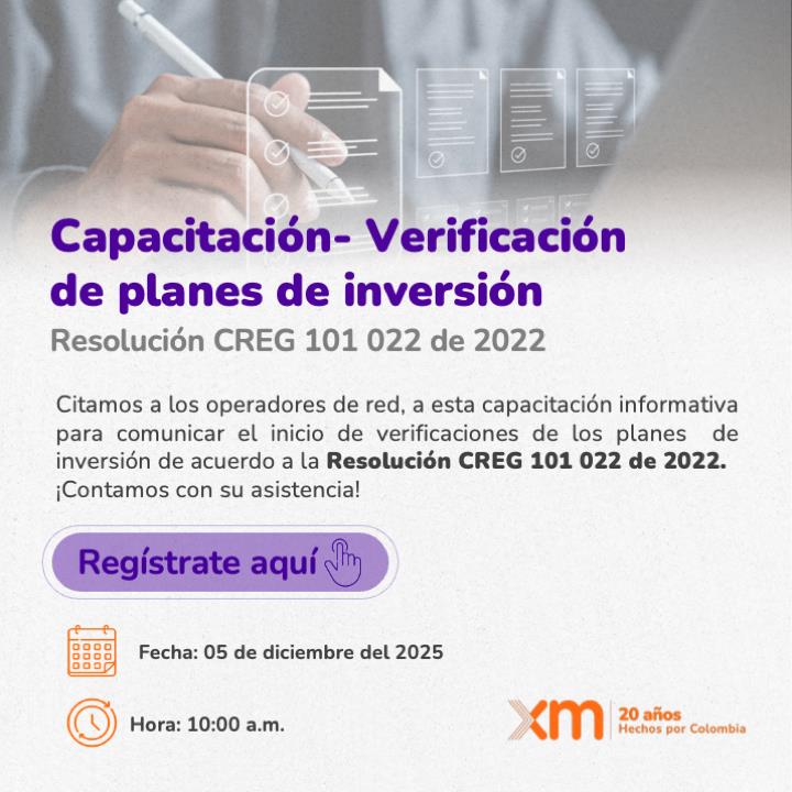 Convocatoria a la capacitación: Verificación de planes de inversión - CREG 101 022 de 2022