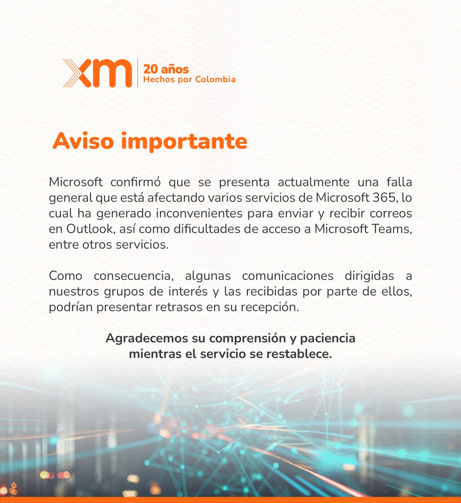 Aviso importante sobre intermitencias de correo electrónico
