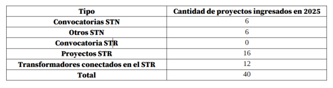 En 2025 ingresaron 40 proyectos de transmisión, con los cuales el SIN aumentó en un 2.31 % los kilómetros de líneas y un 4.76 % la capacidad de transformación respecto a 2024.