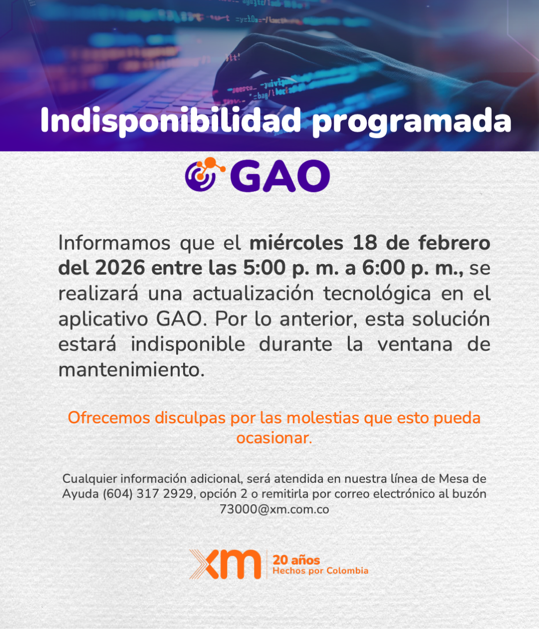 Indisponibilidad programada aplicativo GAO - 18 febrero 2026